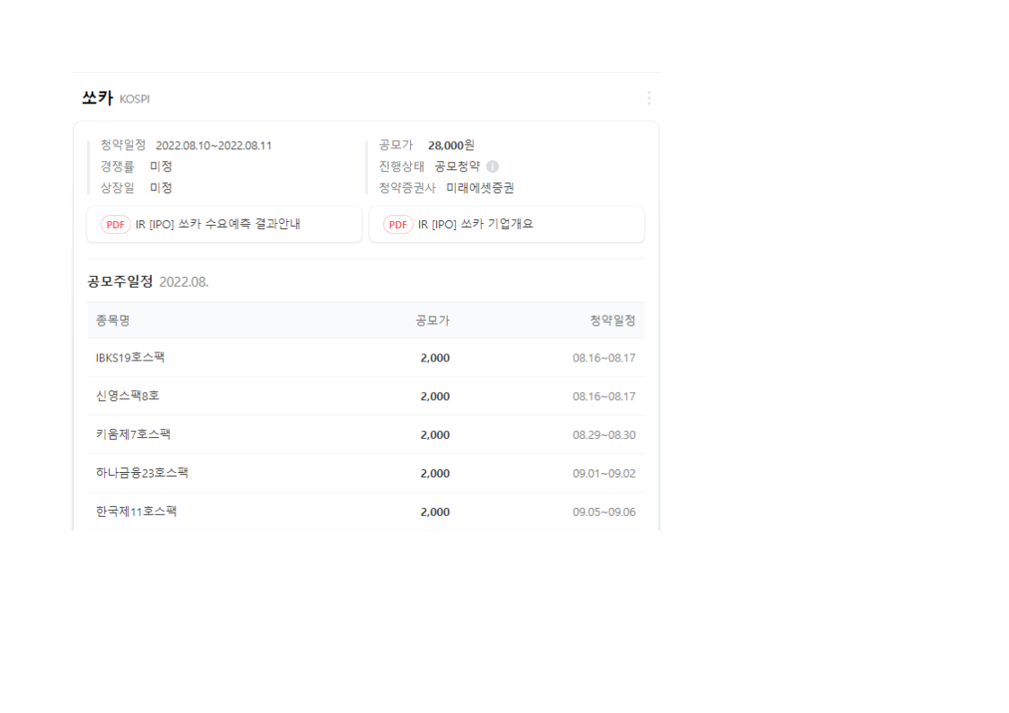 8월 초 기관 수요예측을 하고 8월 10일부터 11일까지 일반 공모청약을 실시합니다.